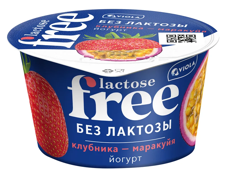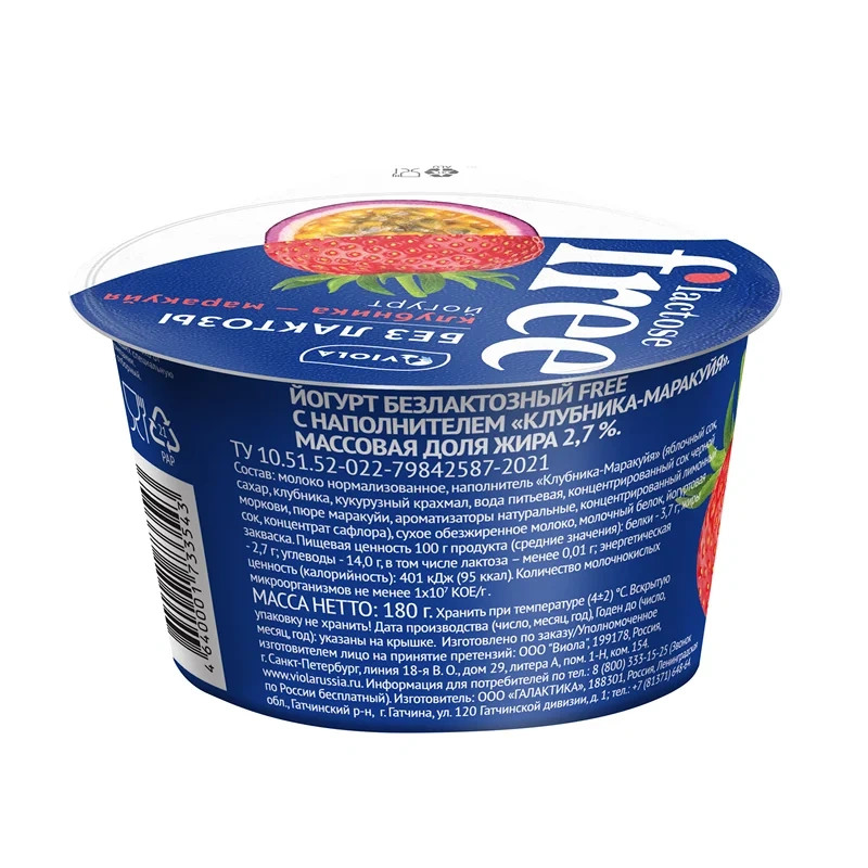 Йогурт Viola безлактозный Free клубника-маракуйя 2.7%, 180г