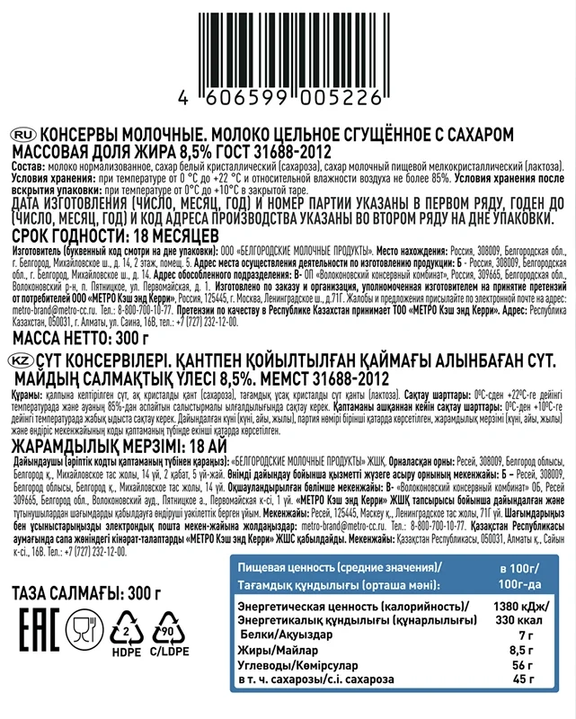 Fine Life Молоко сгущенное ГОСТ 8.5%, 300г