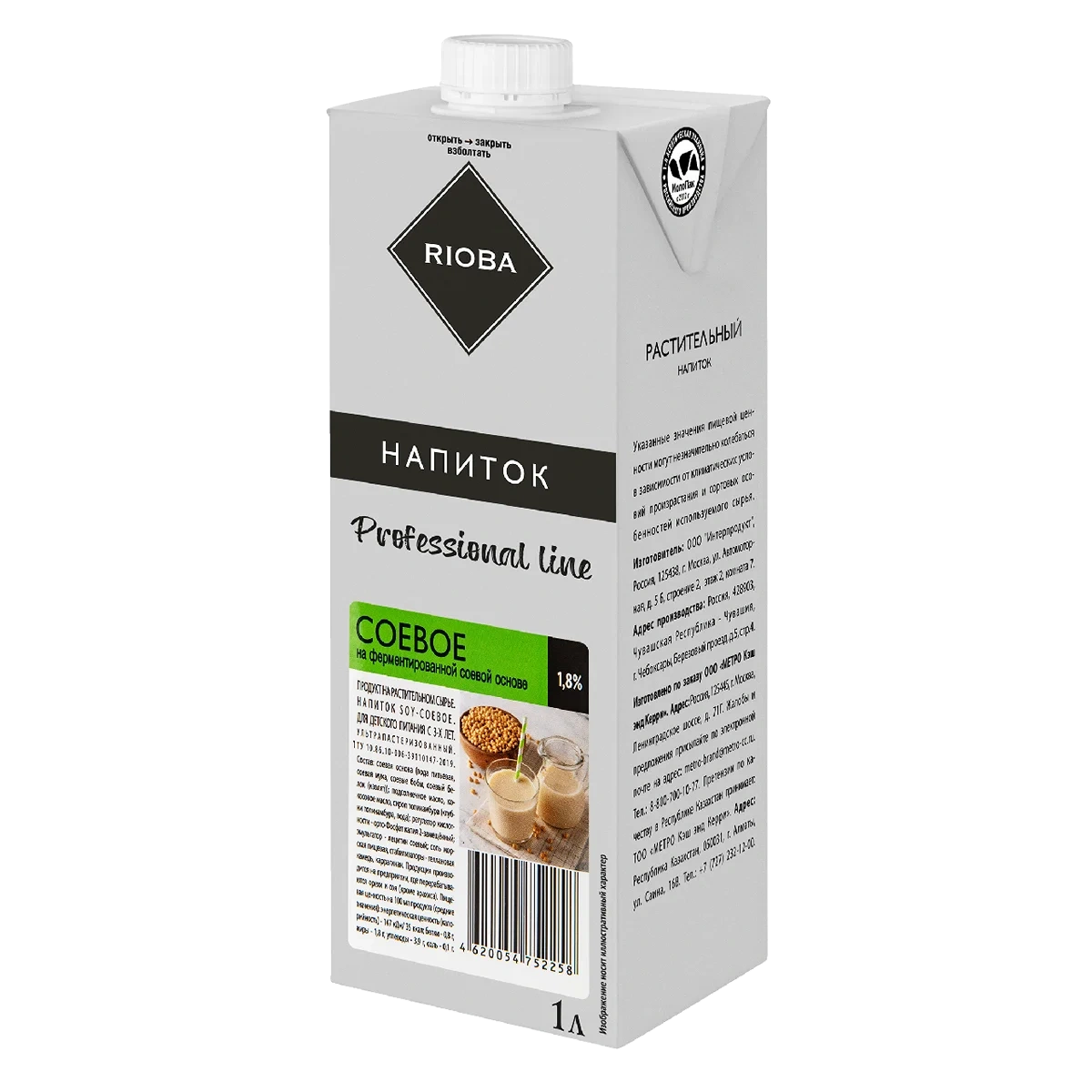 RIOBA Напиток растительный соевый 1.8%, 1л