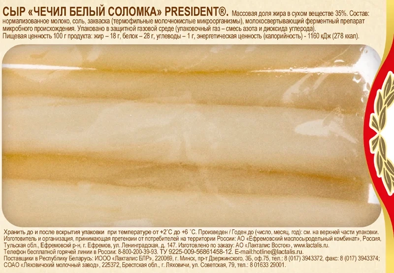 Сыр President Чечил белый 40%, 150г, соломка
