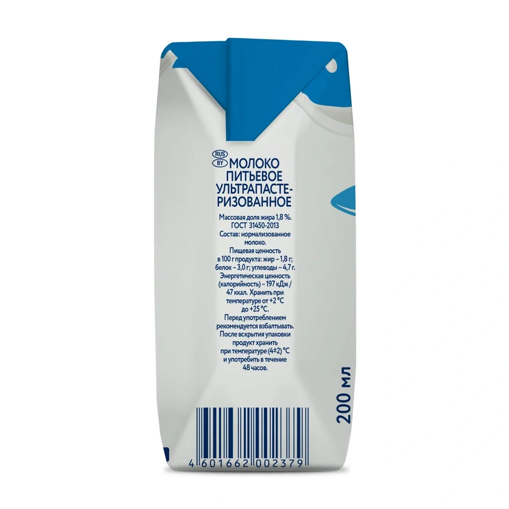 Молоко Parmalat 1.8%, 200мл, ультрапастеризованное