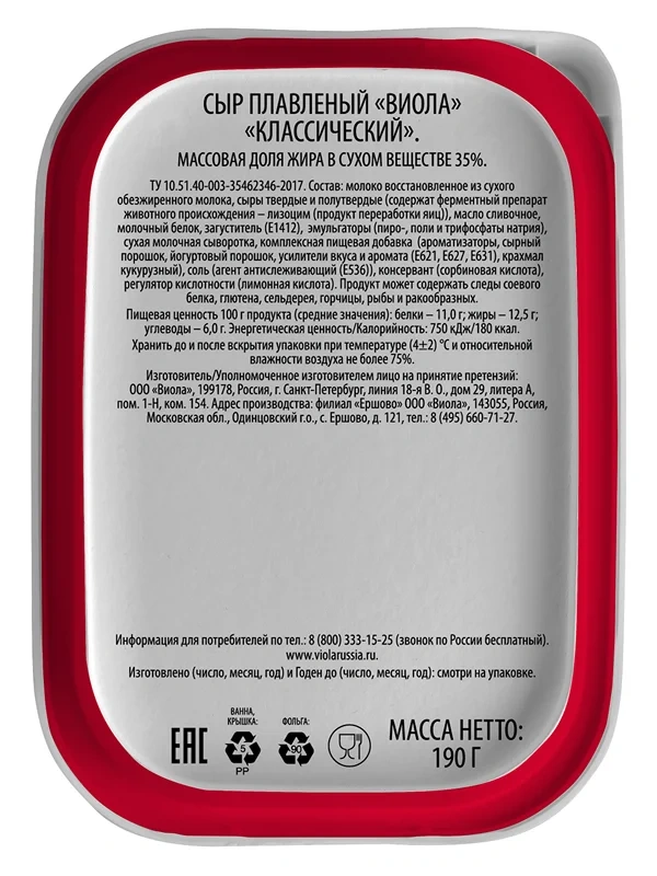 Сыр плавленый Viola Классический 35%, 190г