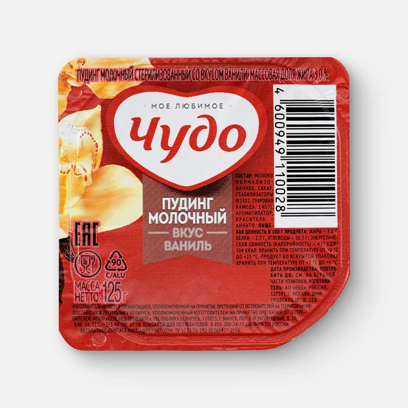 Пудинг Чудо молочный ваниль 3%, 125г
