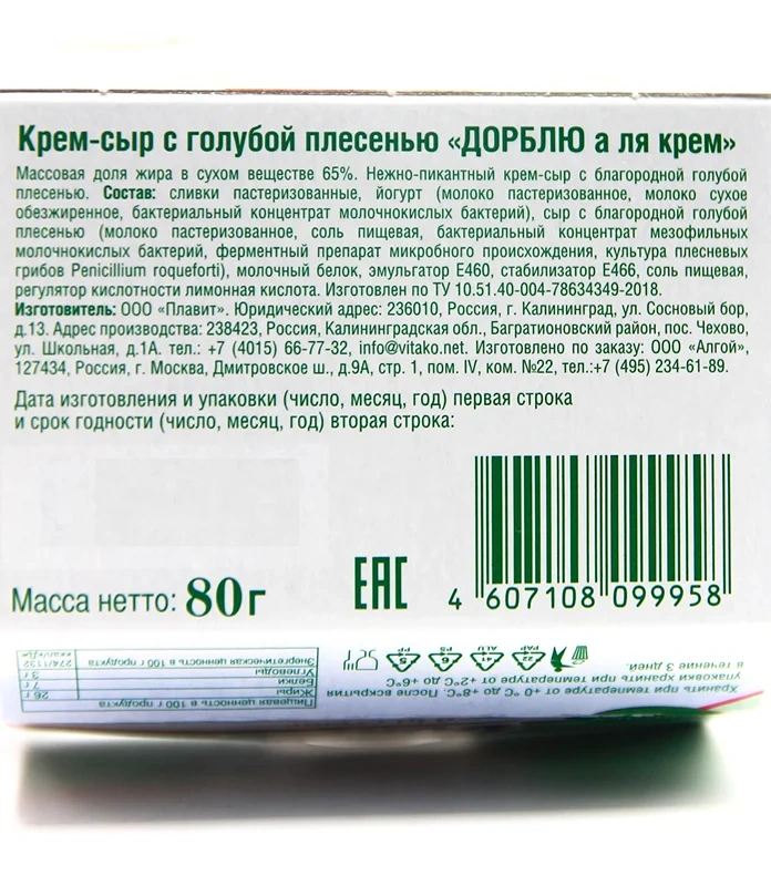 Сыр Dorblu a la creme с голубой плесенью мягкий 65%, 80г