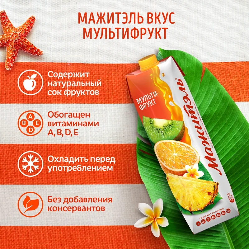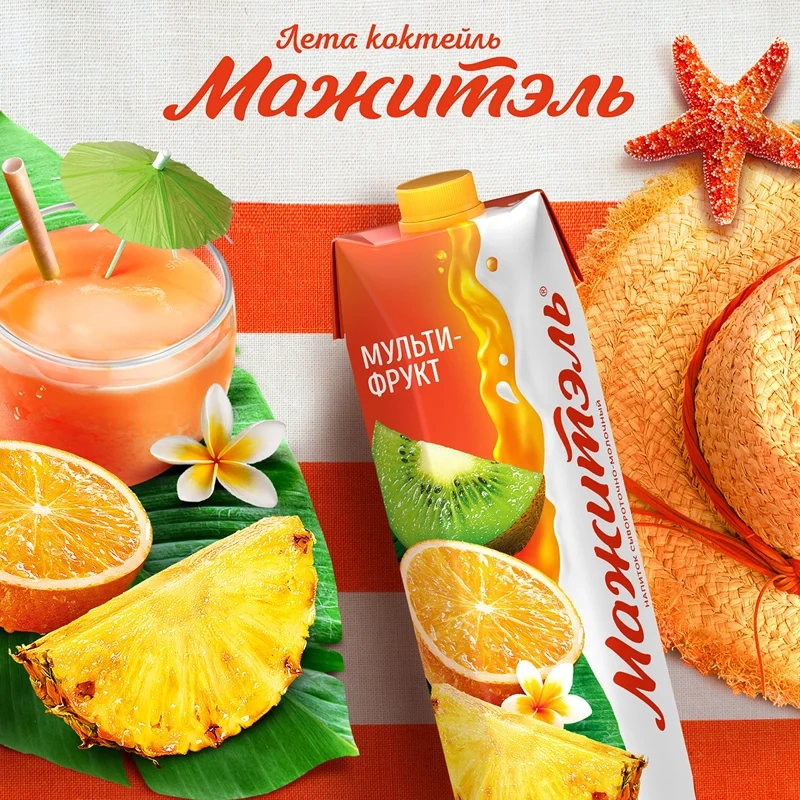 Молочносоковый напиток Мажитэль 0.05% мультифрукт, 950г