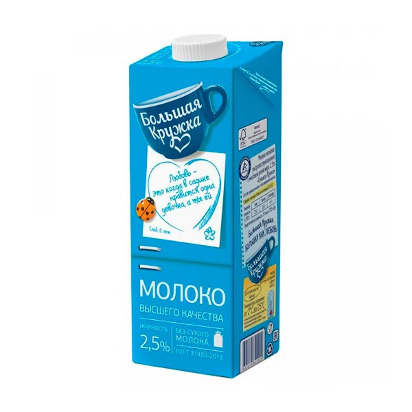 Молоко Большая Кружка 2.5%, 980мл, ультрапастеризованное