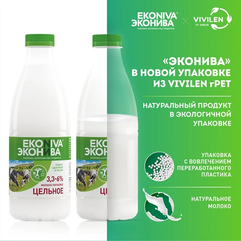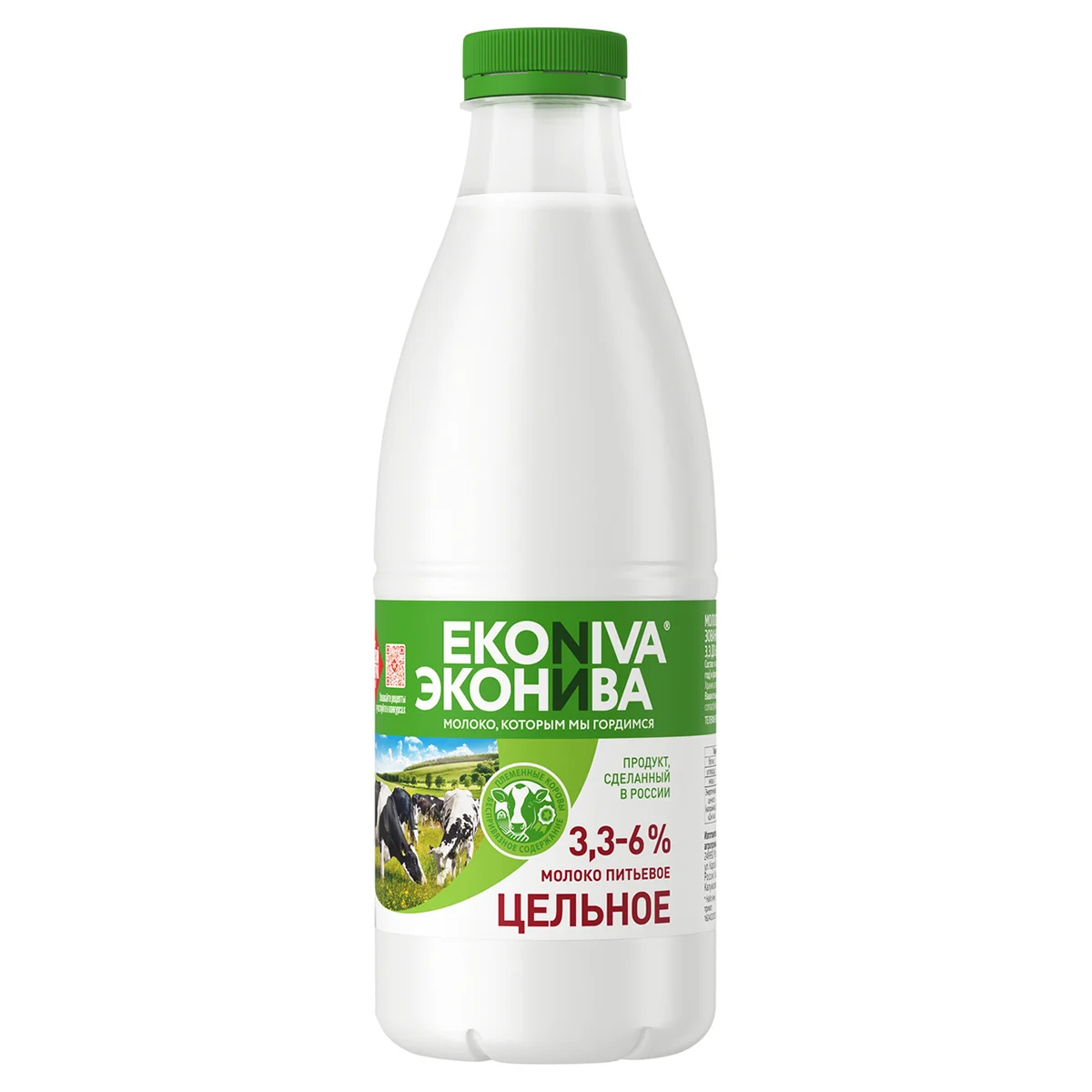 Молоко Эконива пастеризованное цельное 3.3-6%, 1л
