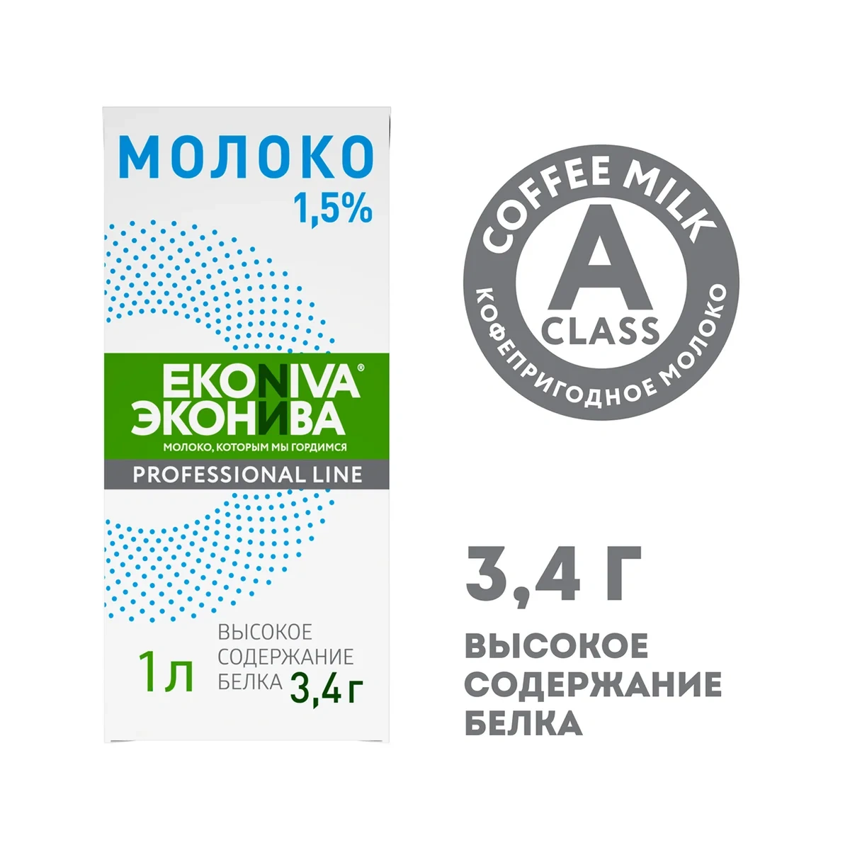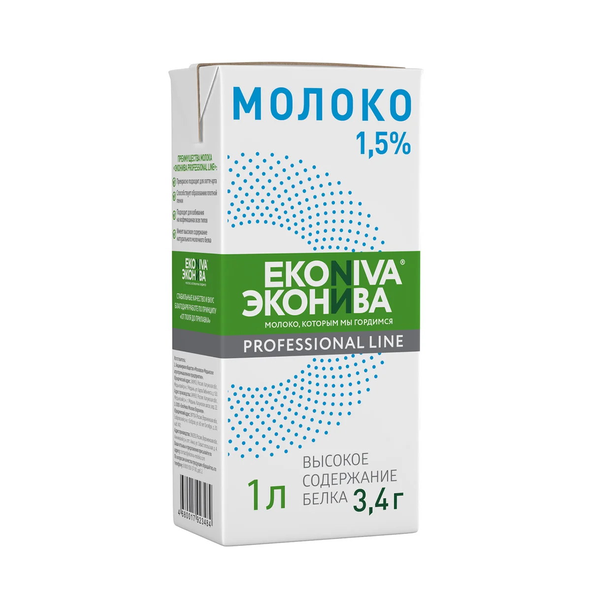 Молоко Эконива Professional Line 1.5%, 1л, ультрапастеризованное