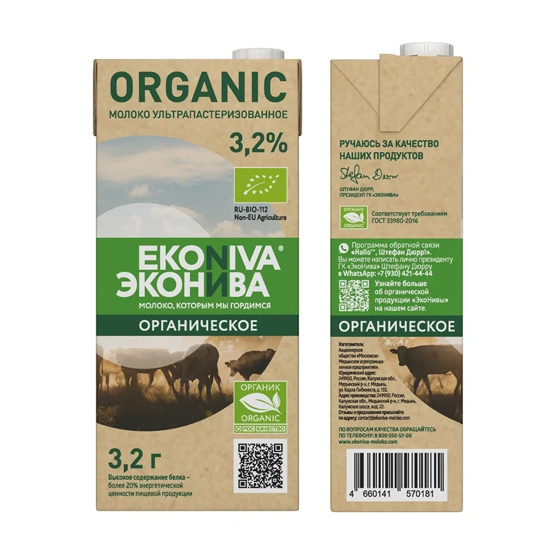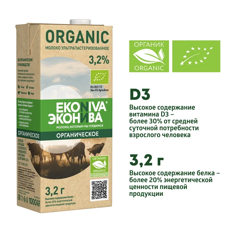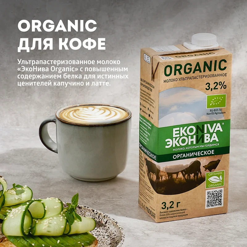Ультрапастеризованное молоко ЭкоНива Organic 3,2% с высоким содержанием натурального белка — не менее 3,2 г на 100 г напитка — создано по стандартам органического производства. Благодаря легкой взбиваемости и устойчивости пены ультрапастеризованное молоко ЭкоНива Organic 3,2% станет надежной основой для латте-арта, а сбалансированный вкус напитка удачным образом будет сочетаться с дескрипторами кофейного зерна. Высокотемпературная обработка позволяет хранить продукт длительное время в закрытом состоянии при температуре до +25 С. Молоко ЭкоНива Organic соответствует требованиям к органи....