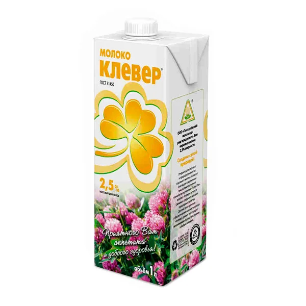 Благодаря современной высокотемпературной технологии и упаковке 'Тетра-Пак', молоко 'Клевер' остается свежим и сохраняет все свои приодные свойства.
