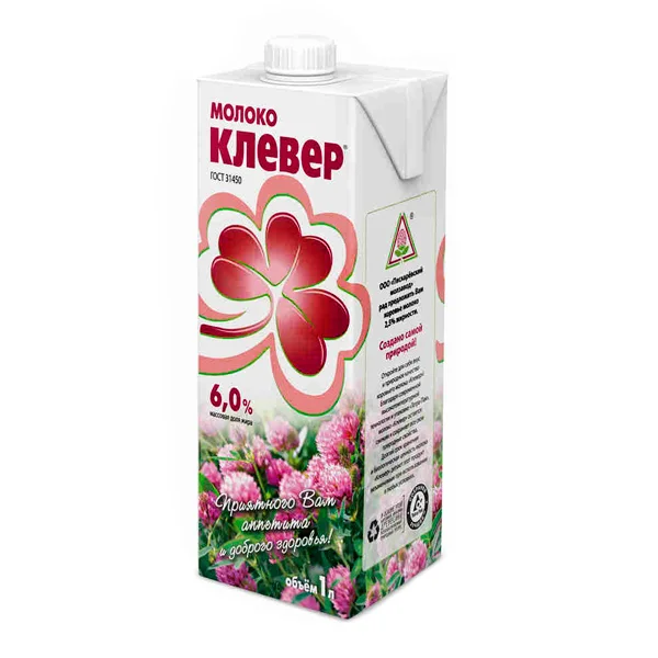 Благодаря современной высокотемпературной технологии и упаковке 'Тетра-Пак', молоко 'Клевер' остается свежим и сохраняет все свои приодные свойства.