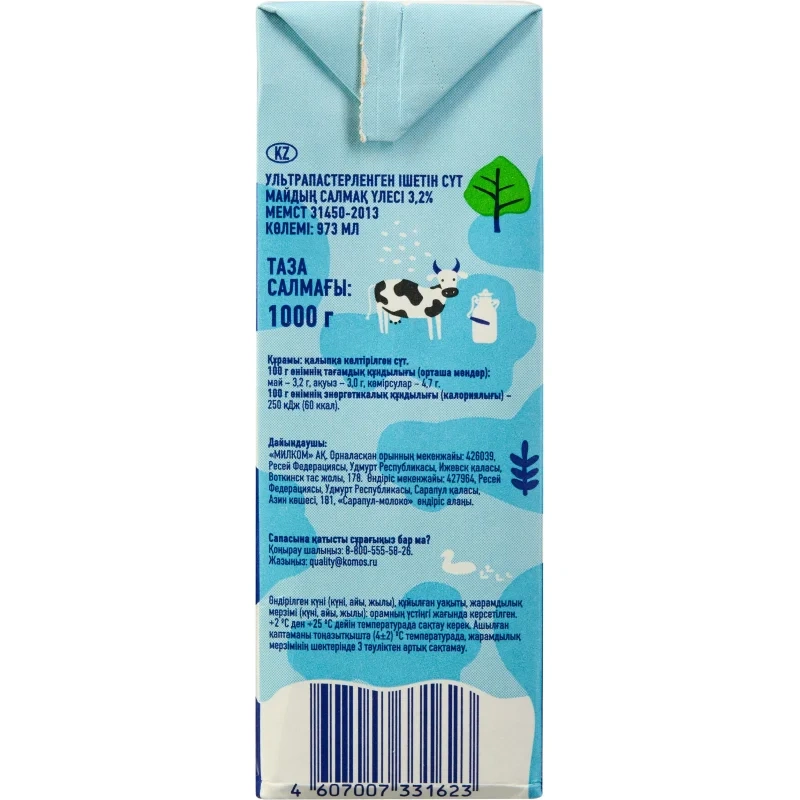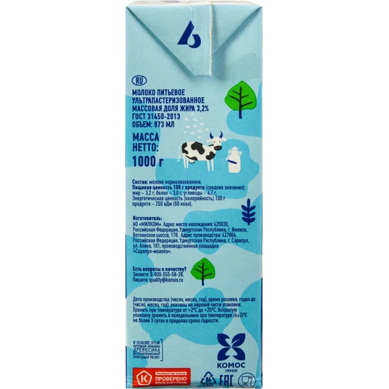Молоко У/паст 3,2% TBA 1кг (0,973л) МолочнаяРечка