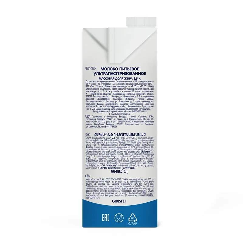 Молоко Калория 2.5%, 1л, ультрапастеризованное