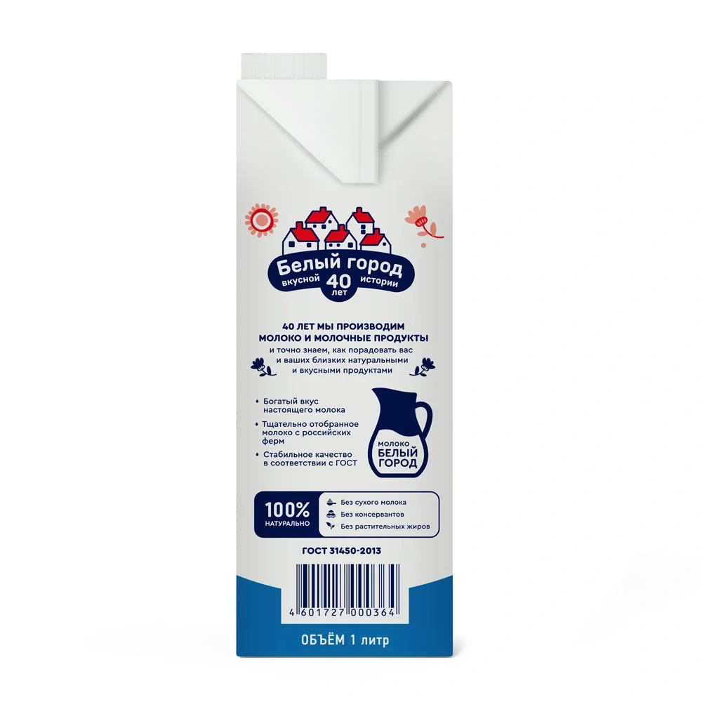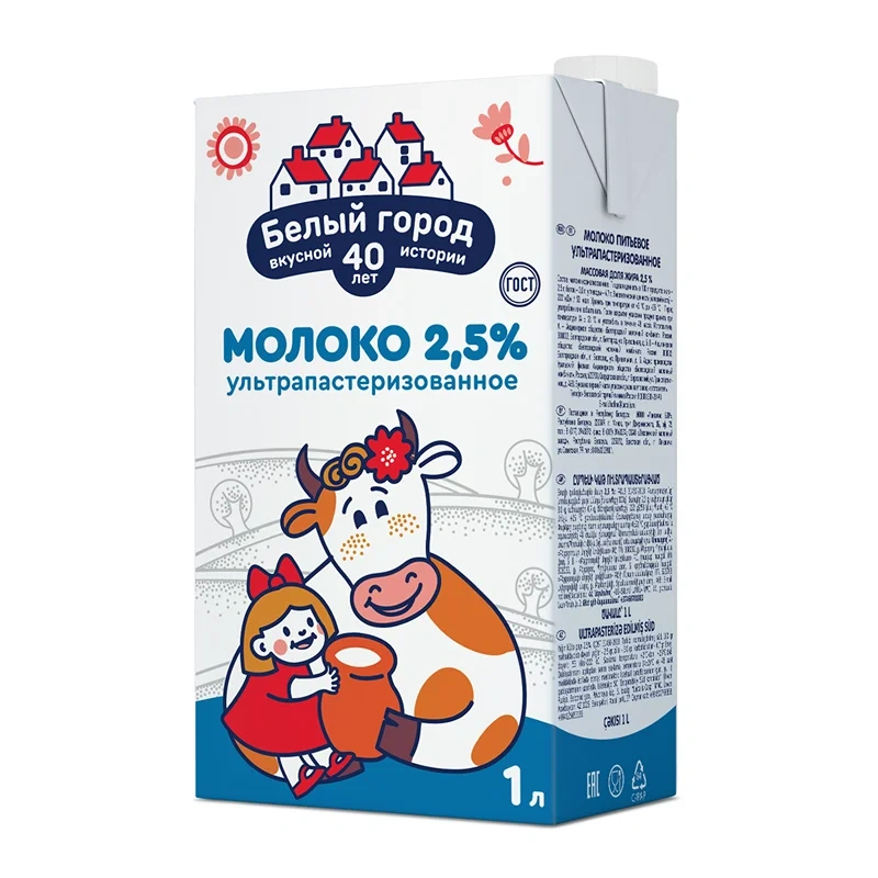 Молоко Белый Город 2.5%, 1л, ультрапастеризованное
