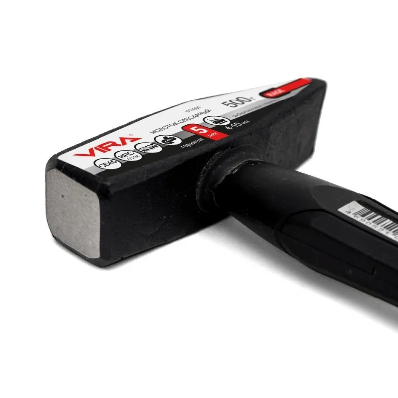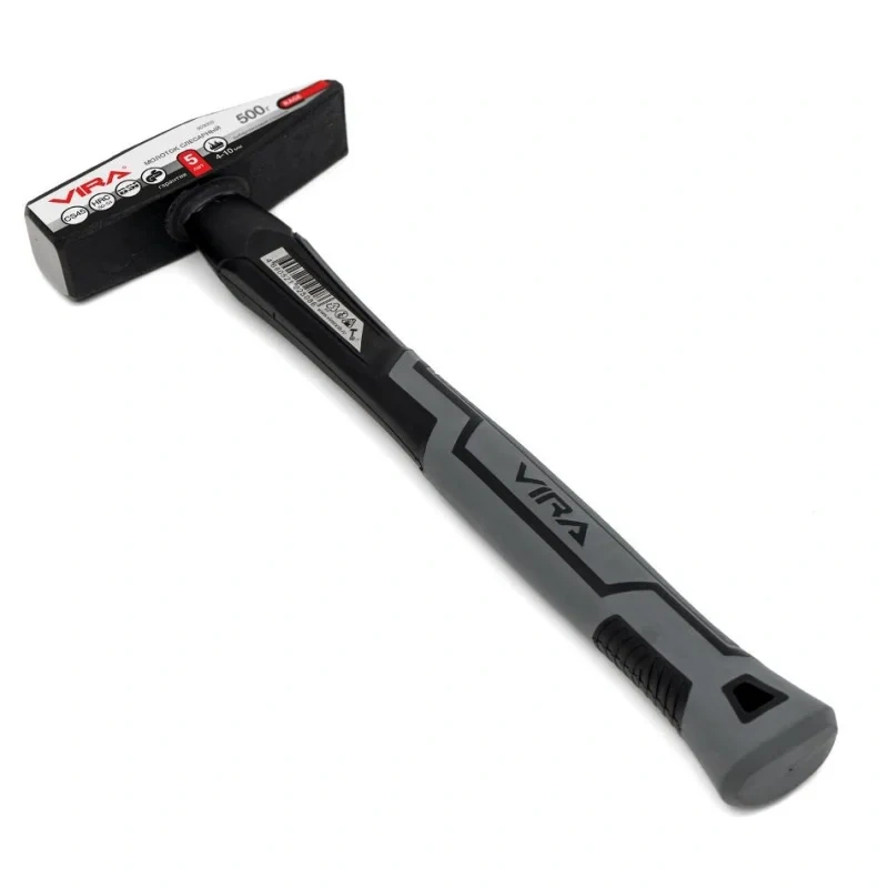 Молоток слесарный 500 г Vira с фибергласовой ручкой. Слесарный молоток служит для забивания крупных и мелких гвоздей, для сборки и демонтажа конструкций из дерева, обработки металлов. Боек выполнен из инструментальной стали CS45. Рабочая часть молотка плотно соединена с рукояткой и ощущается как ее продолжение. Эти части практически невозможно разделить. Твердость бойка: 50–54 HRC. Молоток слесарный Vira, также, соответствует немецкому стандарту DIN. Наши специалисты поработали над усилением закалки инструмента с исходных 2–6 мм до 4–10 мм. Боек стал меньше разрушаться при ударах. Рукоятка из фибергласа прочна, но легка. При использовании многократной намотки, из этого сырья изготавливают парусные мачты, автомобильные глушители и велосипедные рамы. фиберглас не рассыхается, не гниет, не реагирует на воздействие кислот. Еще одно преимущество материала — его способность гасить передающиеся удары, а значит вы меньше отобьете руки работая с металлом. Покрытие из термопластичной резины TPR мягкое наощупь и не дает рукоятке скользить в ладони. Соответствует требованиями немецкого промышленного стандарта качества Geprufte Sicherheit (GS) и стандарту качеству британского института стандартов BSI.