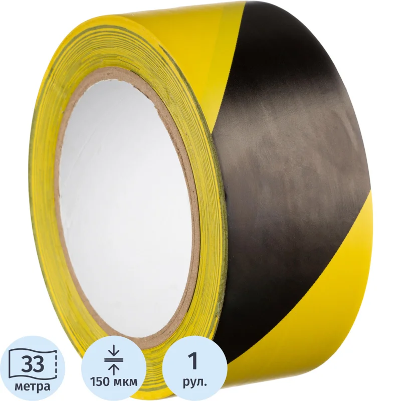 Клейкая лента разметочная Melhose желто-черная, 50мм х 33м, на основе ПВХ