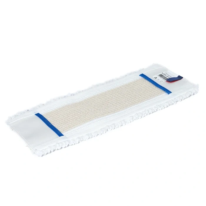Микрофибра и полипропиленовая плоская швабра с поддержкой из полиэстера предназначены для поверхностей R10/11 нескользящего типа. Система плоского вытирания оснащена специальными карманами, которые могут быть предварительно пропитанными или пропитываемыми по мере необходимости через станцию пропитки или с помощью ручек с резервуаром. Идеально подходит для мытья нескользящих или пористых поверхностей, а также для удаления въевшейся грязи. Безопасная система карманов швабры классифицируется как имеющая низкий выброс микропластика при стирке, что подтверждено испытаниями в соответствии с DIN EN ISO 4484-1 и 4484-2, проведенными специализированной внешней лабораторией.