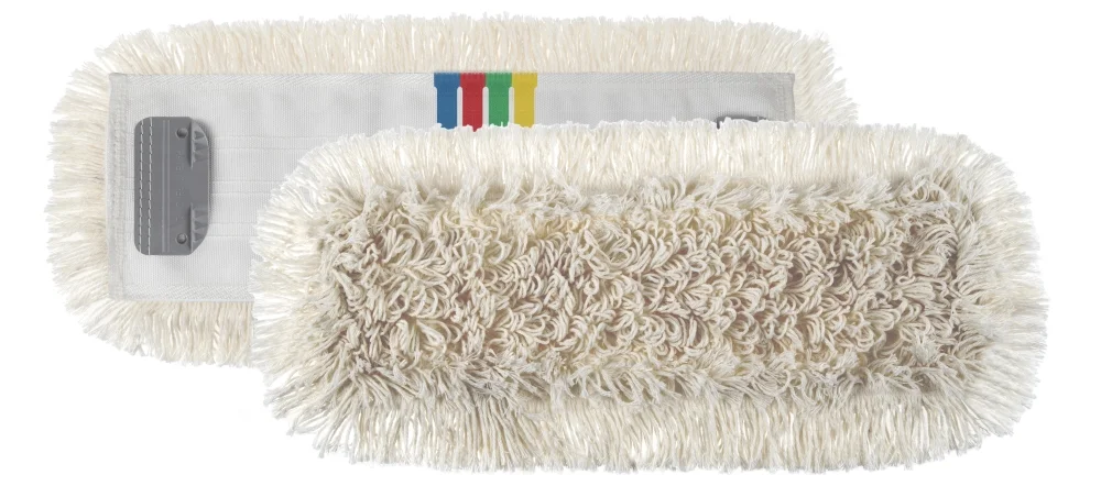 Хлопковая плоская швабра, петлевое окончание внутреннего и обрезанное внешнее, поддержка из полиэстера