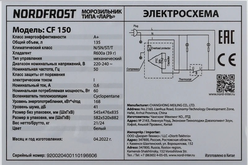 Морозильный ларь Nordfrost CF 150 белый 60Вт