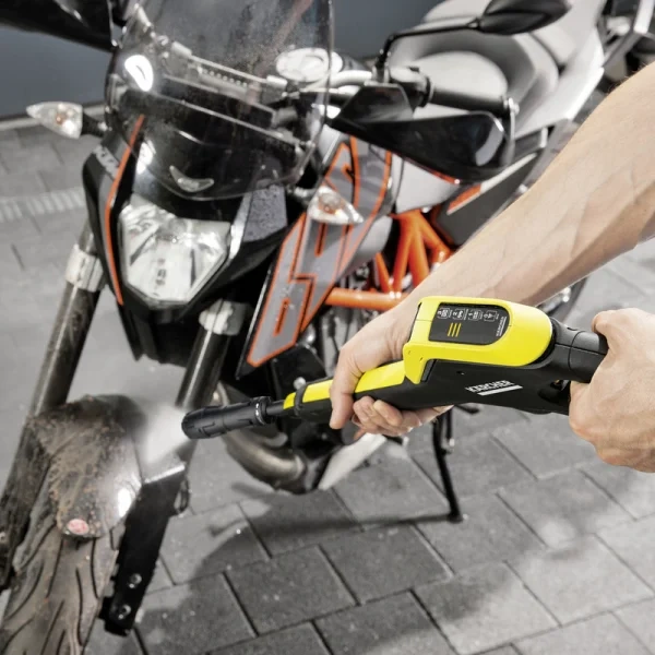 Аппарат хорошо подходит для периодического применения и удаления средних загрязнений и обеспечивает производительность по площади 30 м²/ч. С аппаратом высокого давления Full Control вы легко подберёте оптимальное давление для поверхностей любого типа. Уровень давления регулируется на струйной трубке и отображается на встроенном в пистолет светодиодном индикаторе — для максимального контроля. Переключение с режима высокого давления на режим нанесения чистящего средства осуществляется без замены струйной трубки. Также на время коротких перерывов можно закрепить пистолет со струйной трубкой на корпусе аппарата, где он всегда будет под рукой. Регулируемая телескопическая ручка удобно раздвигается на требуемую высоту и сдвигается для компактного хранения. Система Plug ’n’ Clean проста в использовании, что позволяет заменять ёмкость с чистящим средством буквально одним движением и быстро определять остаточный уровень наполнения. Другими отличительными особенностями аппарата высокого давления является низкий центр тяжести, прочная опора, придающая аппарату большую устойчивость и практичная направляющая для шланга. Опора может также использоваться в качестве второй ручки для переноски, когда нужно поднять аппарат, чтобы убрать его на полку или в багажник автомобиля.