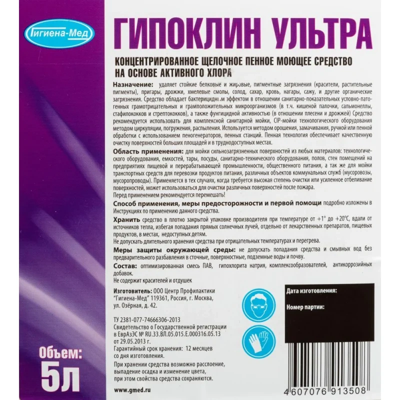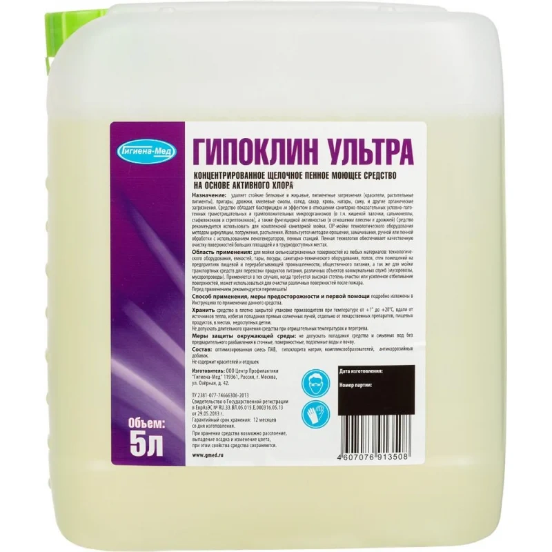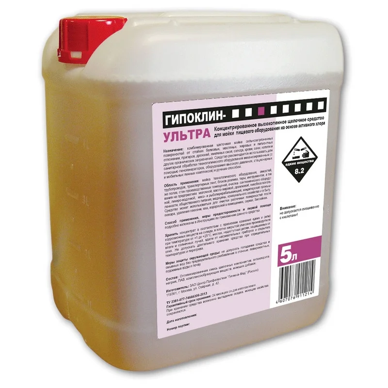 Универсальное моющее средство Бриллиант Гипоклин Ультра 5л, с активным хлором для пищевого оборудования, концентрат