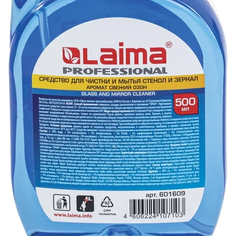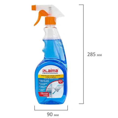 Моющее средство для стекол Laima Professional 500мл, для стекол и зеркал, спрей