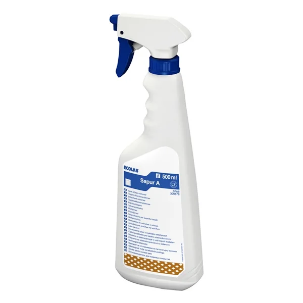 Sapur a – Пятновыводитель для текстильных покрытий. Хорошо подходит для борьбы с засохшими следами кофе, чая, мороженного, шоколада, различных напитков. Флакон снабжен триггером (курком) для экономии расхода.