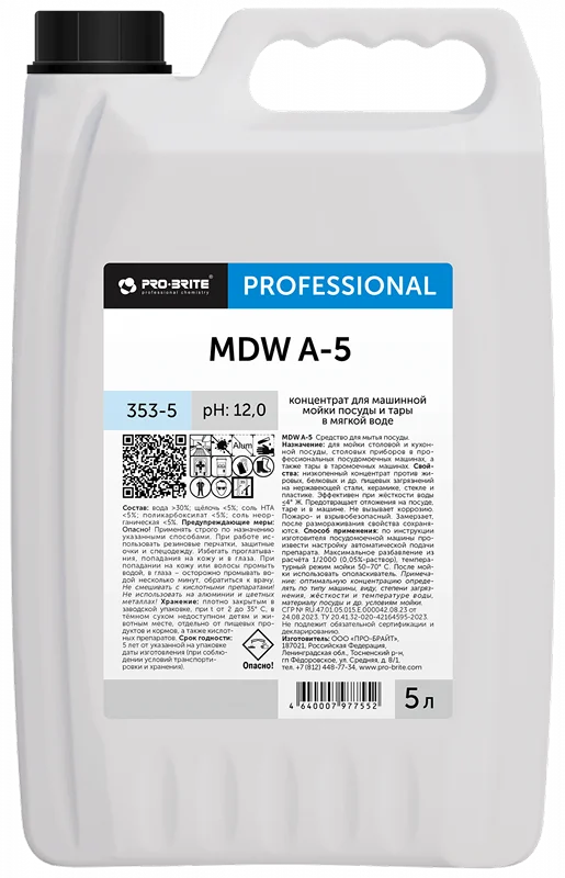 Моющий концентрат для ПММ Pro-Brite MDW A-5 5л, 353-5