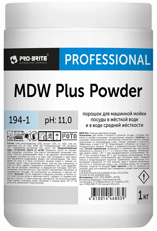 Моющий концентрат для ПММ Pro-Brite MDW Plus Powder 1л, 194-1