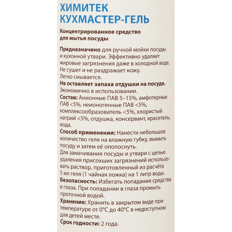 Моющий концентрат для посуды Химитек Кухмастер-Гель 1л, 070205