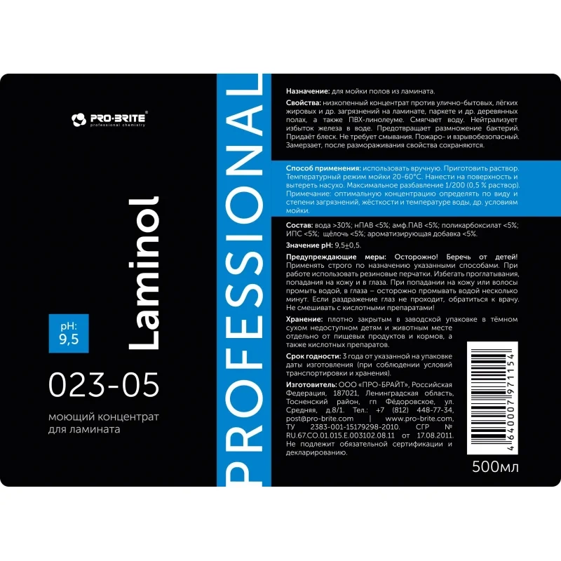 Моющий концентрат для полов Pro-Brite Laminol 500мл, 023-05