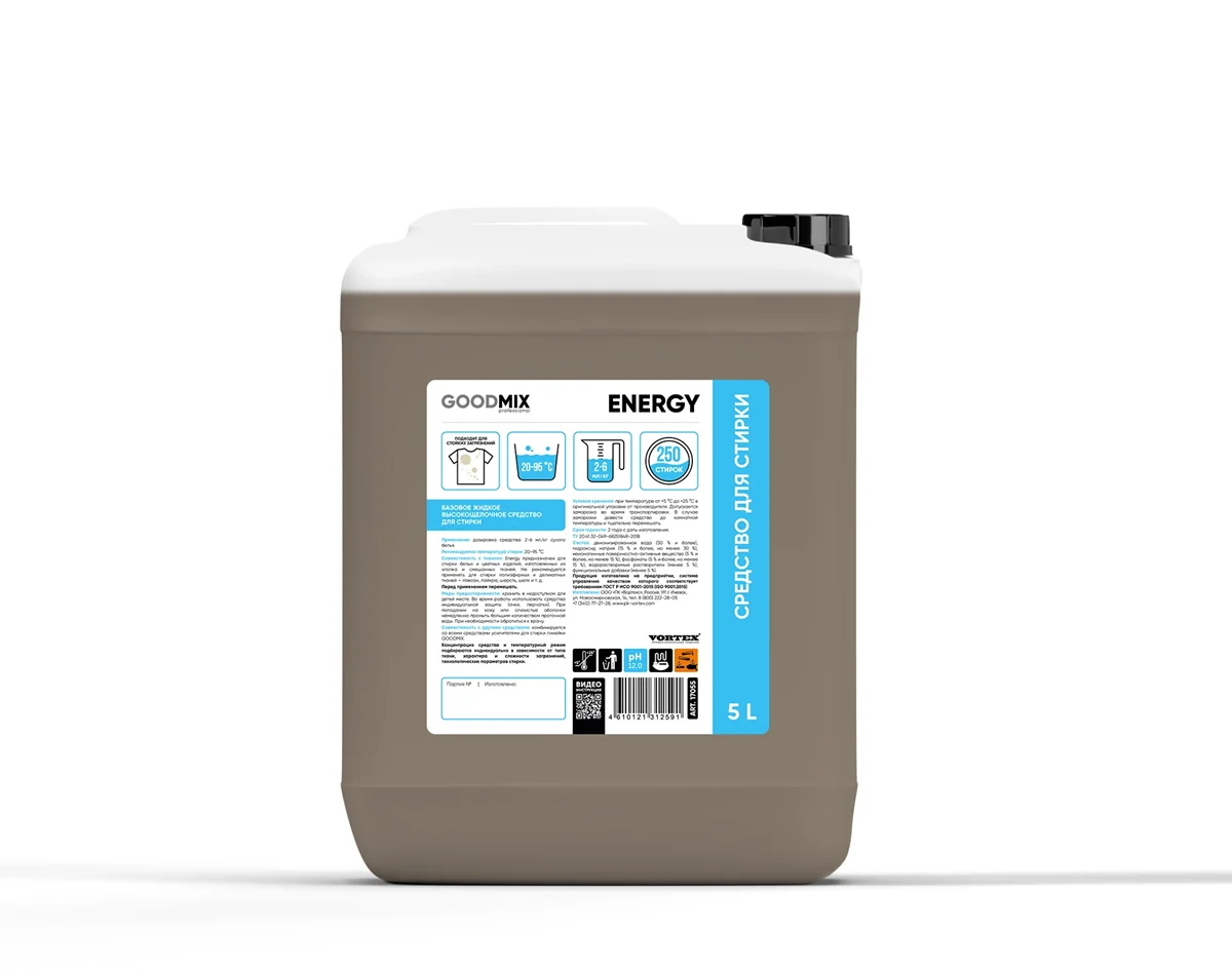 Базовое сильнощелочное жидкое моющее средство Mix Energy предназначено для предварительной и основной машинной стирки белого и цветного текстиля, изготовленного из хлопковых и смешанных тканей, устойчивых к стирке в щелочной среде.