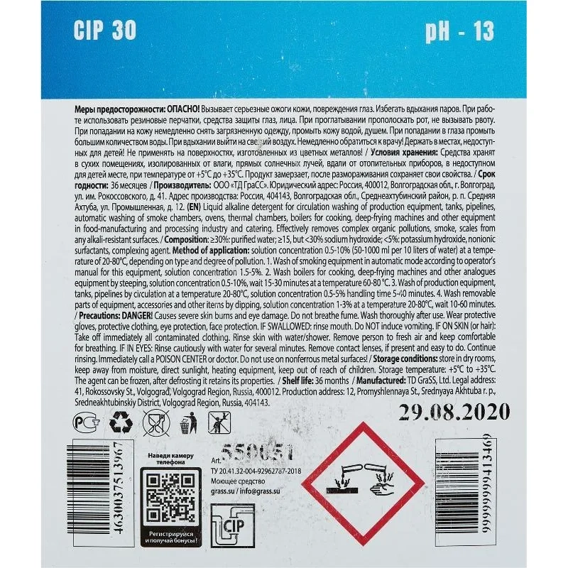 Средство для CIP-мойки пищевого оборудования Grass CIP 30 5 л (концентрат)