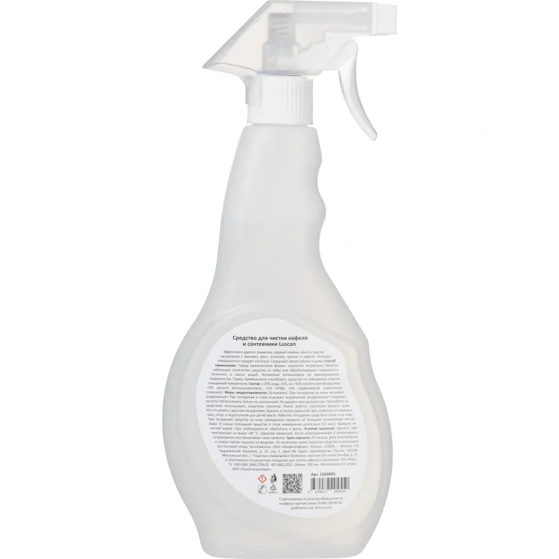 Назначение: средство для сантехники Luscan — идеальный помощник в борьбе с ржавчиной, водным камнем и мыльными отложениями при чистке раковин, унитазов, кафеля и других сантехнических изделий. Эффективно справляется с загрязнениями без лишних усилий и уничтожает микробы.