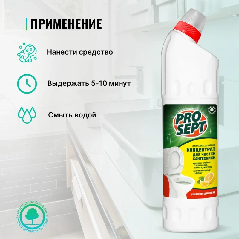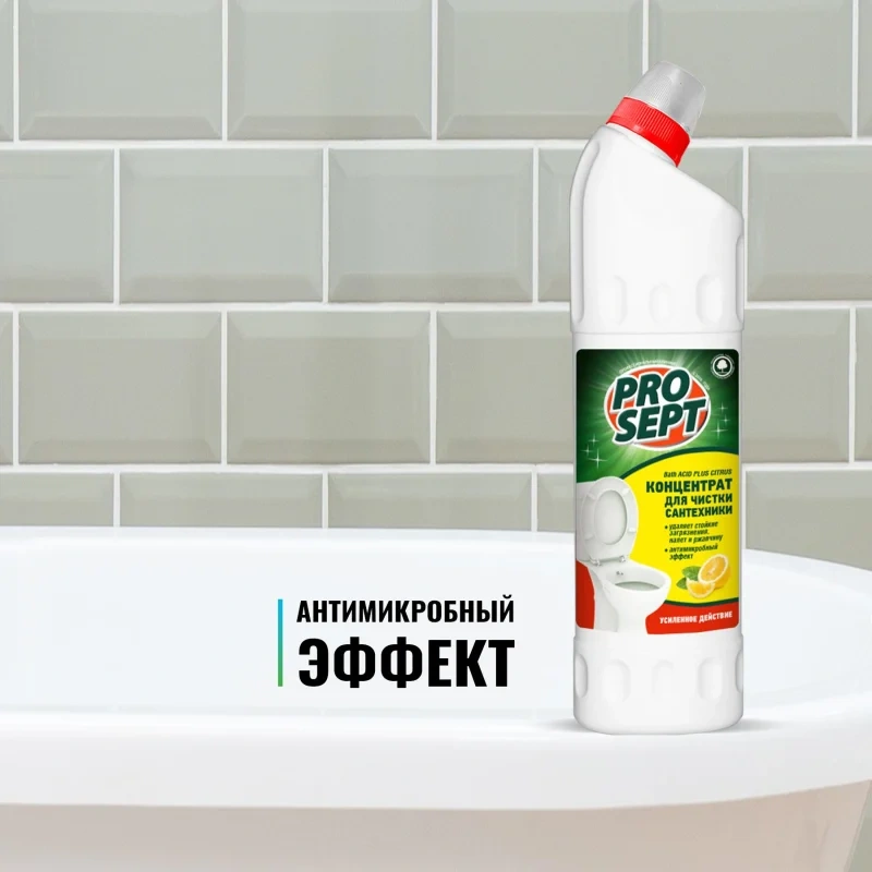 Средство для сантехники Prosept Bath Acid+ 750 мл. Назначение: гелеобразное средство усиленного действия очищает сильно запущенные загрязнения: толстые слои ржавчины, известковые и грязесолевые отложения, налеты мыльного и мочевого камня. Благодаря густой консистенции, средство задерживается на поверхности усиливая эффект от чистящего состава. Освежает поверхность, устраняя неприятные запахи. Легко смывается, не оставляя разводов. Способ применения: проверить стойкость поверхности на незаметном участке. Уход за сантехникой: концентрат нанести равномерным слоем на поверхность, растереть при помощи щетки или губки. Через 10-15 минут смыть водой. При необходимости повторить обработку. Мытье стен и полов: концентрат развести водой из расчета 10-20 мл на 1 литр в зависимости от степени загрязнения. Нанести на поверхность, растереть и смыть водой. Меры предосторожности: осторожно, содержит щавелевую кислоту! Для защиты рук использовать резиновые перчатки. При попадании на кожу или в глаза обильно промыть их водой. При необходимости обратиться к врачу. Беречь от детей. Не использовать на акриловых, алюминиевых и эмалированных поверхностях, а также на смесителях, мраморе и глянцевой и глазурованной плитке. Состав: вода, кислота щавелевая < 5 %, кислота минеральная, КПАВ < 5 %, НПАВ < 5 %, загуститель, парфюмерная композиция, краситель. Условия хранения: хранить в плотно закрытой упаковке в сухом темном помещении отдельно от пищевых продуктов при температуре от +5 до +25 С. После размораживания возможно изменение цвета и выпадение осадка, чистящие свойства сохраняются. Срок годности: 36 месяцев.