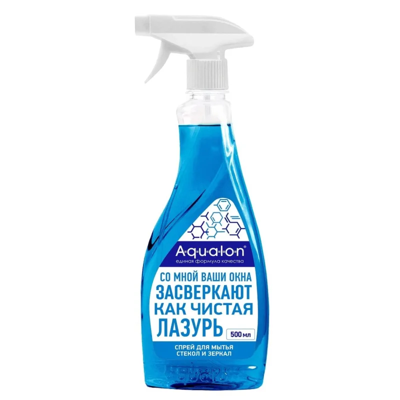 Средство для стекол и зеркал Аквалон Лазурь 500 мл Назначение. Предназначено для мытья зеркал, оконных и автомобильных стекол, пластиковых оконных рам, витрин, кафеля, изделий из хрусталя, пластика и других водостойких поверхностей. Современная рецептура на основе изопропилового спирта позволяет эффективно без разводов удалять грязь, пыль, отпечатки пальцев, жировые и другие загрязнения. Придаст очищенной поверхности приятный аромат и лазурную чистоту. Способ применения. Повернуть носик распылителя в положение 'SPRAY' или 'ON'. Нанести средство на очищаемую поверхность с расстояния 15-25 см. Протереть хорошо впитывающей салфеткой, мягкой тканью или сгоном. При сильном загрязнении процедуру повторить. Меры предосторожности. Не распылять в лицо и глаза! Не употреблять внутрь. Хранить в недоступном для детей месте. Состав. Деминерализованная вода, нПАВ (<5%), изопропанол (<5%), парфюмерная композиция, консервант, краситель. Условия хранения. Хранить в вертикальном положении при комнатной температуре вдали от прямых солнечных лучей. В случае замерзания после размораживания сохраняет свои свойства. После размораживания встряхнуть. Срок годности: 3 года (с даты изготовления).
