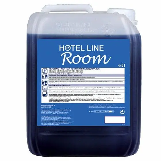 ROOM применяется для ежедневной протирки водостойких поверхностей: стекол, зеркал, деревянных поверхностей, мебели, фурнитуры и прочих предметов интерьера. Средство разработано специально для комплексной уборки в отелях и входит в линейку продуктов DR.SCHNELL Hotel Line.Объем: 5 литров.Отличительные особенности:•Легко и быстро очищает пыль и грязь, отпечатки пальцев с водостойких поверхностей.•Предотвращает от быстрого повторного загрязнения, не позволяет пыли задерживаться на поверхности.•Поверхность после уборки моментально сохнет, на ней не остаются разводы.Инструкция по применению:•Нанести готовый раствор ROOM при помощи спрей-бутылочки на салфетку или на поверхность, протереть поверхность салфеткой.•Использовать 1% раствор (10 мл на 1 л воды).•Оптимально использовать средство с микроволоконной салфеткой КвикСтар микро или с вязанной микроволоконной салфеткой Микро Тафф Плюс в зависимости от поверхности.•Для точного измерения концентрации используйте дозатор моющих средств MX.pH концентрата: 10Состав: дипропиленгликольмономктилэфир, малеиновая кислота, этанол.