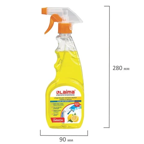 Моющее средство для стекол Laima Professional 500мл, лимон, с распылителем
