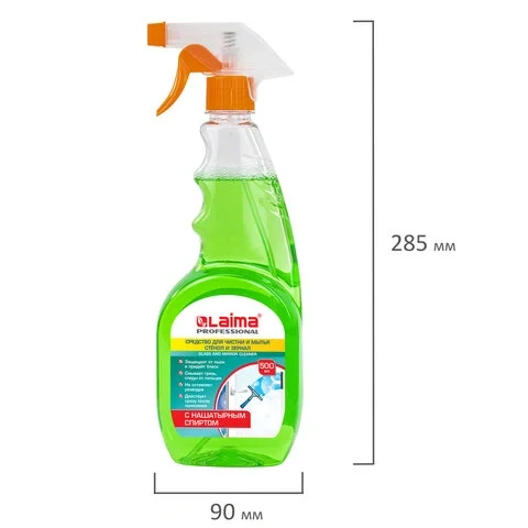 Моющее средство для стекол Laima Professional 500мл, с нашатырным спиртом, с распылителем