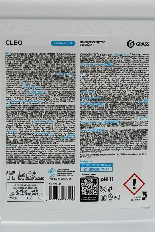 Универсальное моющее средство Grass Cleo 5кг, концентрат, 125415