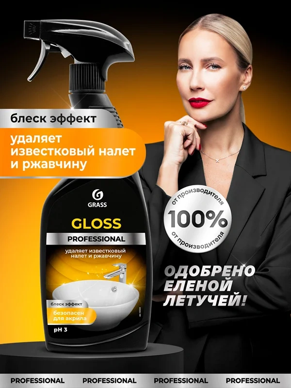 Чистящее средство для сантехники Grass Gloss Professional 600мл, спрей, 125533