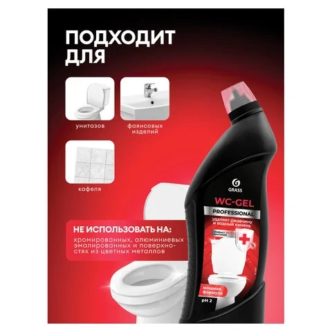 Моющее средство для сантехники Grass WC-gel Professional 750мл, гель, 125535