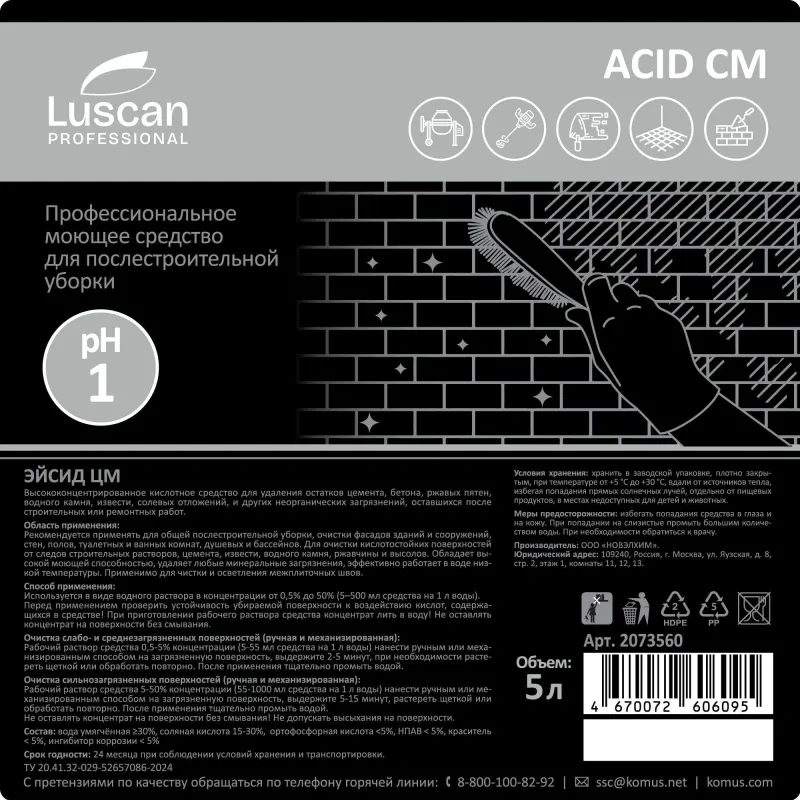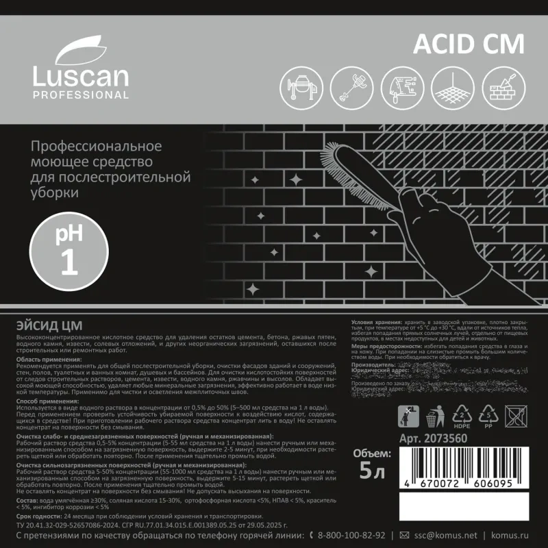 Моющее средство специальное Luscan Professional Acid CM, после стройки, 5л
