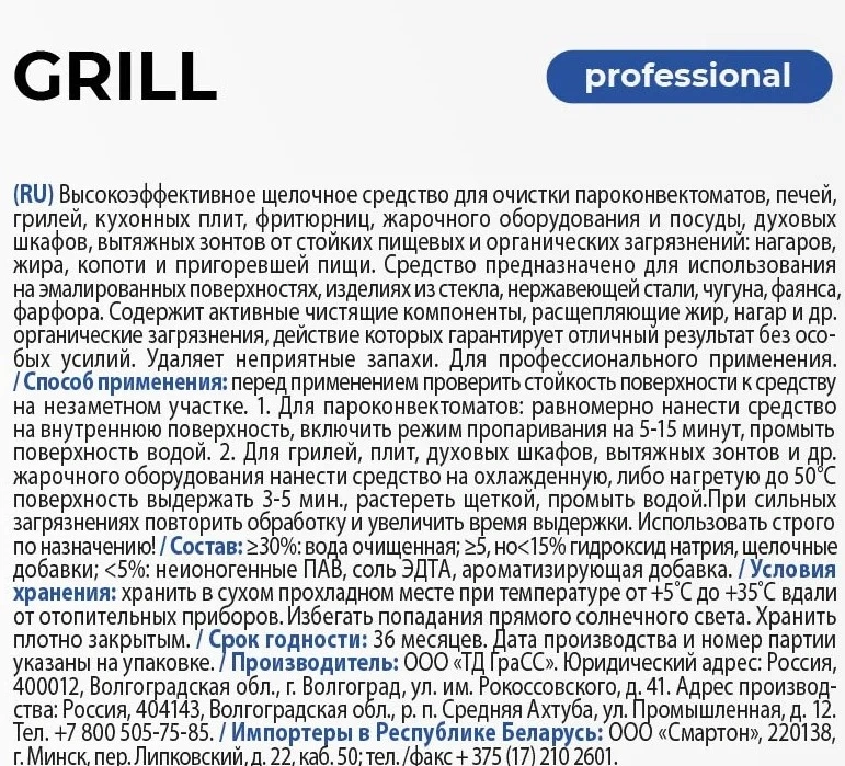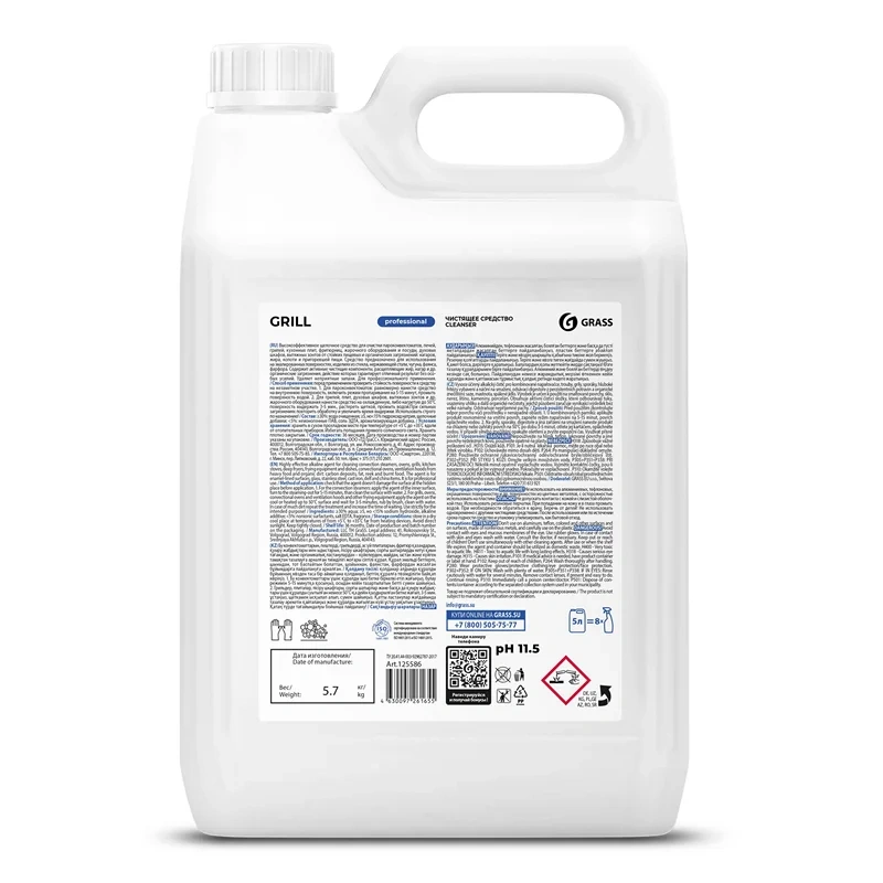 Средство для чистки грилей и духовых шкафов Diversey Suma Grill D9 5 л (концентрат). Назначение: средство Suma Grill D9 является сильнощелочным моющим средством, предназначенным для регулярной чистки печей, грилей или жаровен от сильных загрязнений. Благодаря сочетанию щелочи, ПАВов и растворителей, возможно удаление даже очень сильных углеродных загрязнений. При разбавлении водой, данный продукт также может использоваться для замачивания фритюрниц. Благодаря сильному воздействию щелочи удаляются даже очень сильные углеродные загрязнения. Пенный распылитель с удлинителем позволяет чистить труднодоступные места. Область применения: для применения на объектах ЖКХ, предприятиях общепита и пищевой промышленности, пищевых производствах, в торговле, ресторанах, столовых, объектах социального обеспечения, в гостиницах, офисах, образовательных учреждениях (включая школьные и дошкольные), ЛПУ, согласно рекомендациям производителя. Способ применения: Чистка печей/грилей 1. Убедиться, что температура поверхности ниже 80С (оптимальная температура 60-80С). 2. Распылить неразбавленный продукт на поверхность или оборудование (рекомендуется использовать прилагаемый пенный распылитель с удлинительной трубкой). 3. Оставить на 5-30 минут в зависимости от загрязнения. 4. Удалить крупные загрязнения щеткой или металлической мочалкой. 5. Промыть чистой горячей водой и оставить самостоятельно высыхать. Чистка фритюрниц. 1. Смыть масло и закрыть клапан. 2. Наполнить водой емкость до уровня масла. 3. Добавить 1 л средства Suma Grill D9 на каждые 10 л воды (10%). Проверить уровень наполнения. 4. Включить фритюрницу и довести до контролируемого кипения на 15-30 минут. 5. После охлаждения и слива удалить оставшиеся загрязнения со стенок и нагревающих элементов металлической мочалкой или губкой. 6. Промыть дважды чистой горячей водой и оставить самостоятельно высыхать. Чистка вытяжек гриля. 1. Разобрать вытяжку гриля. 2. Поместить элементы вытяжки в раствор (50-100мл средства на 1л горячей воды (5-10% раствор)).3. Оставить на 15-60 минут. 4. Тщательно промыть чистой водой и оставить самостоятельно высыхать. В соответствии с рекомендованными правилами применения средство Suma Grill D9 может использоваться на всех стандартных поверхностях из ержавеющей стали на кухнях. Запрещается использовать на материалах, не стойких к воздействию щелочной средой, например, алюминий, медь и т.д. Состав: вода (мягкая), изопропилиденгликоль, алкил (C 8-10) полиглюкозид, гидроксид натрия, краситель. Срок годности: 2 года с момента производства (при соблюдении условий хранения, рекомендованных производителем).