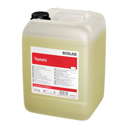 Ecolab Topmatic (Эколаб Топматик) - щелочное профессиональное концентрированное жидкое средство для мытья посуды в посудомоечной машине в жесткой воде или воде средней жесткости.
