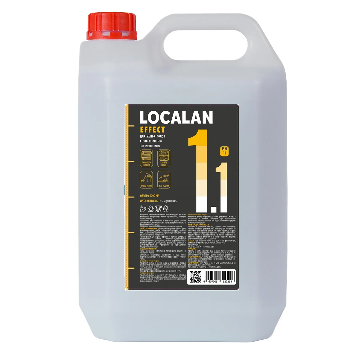 Моющий концентрат для полов Localan Effect 1.1 с повышенным загрязнением, 1.5л