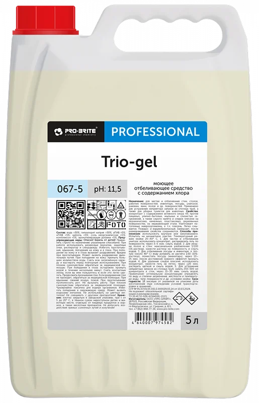 Моющий отбеливающий концентрат Pro-Brite Trio-gel 067-5, пенный