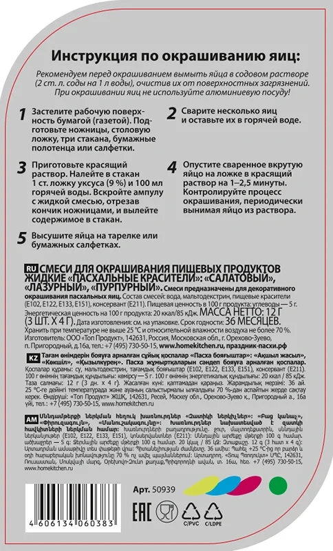 Смеси для окрашивания Домашняя кухня Пасхальные красители (4г x 3шт), 12г