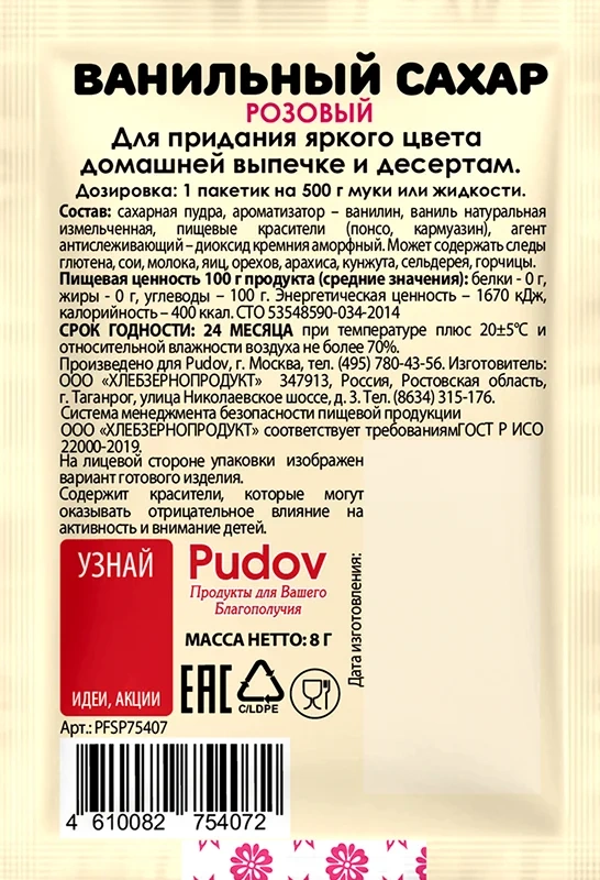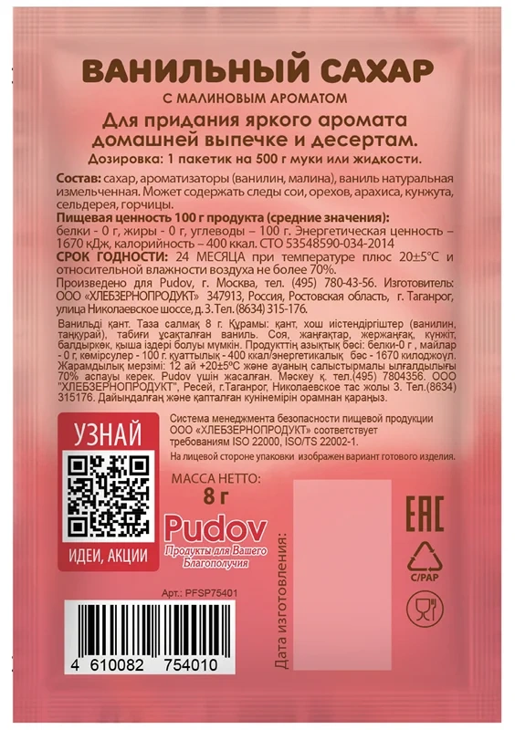 Сахар ванильный С.Пудовъ с малиновым ароматом, 8г