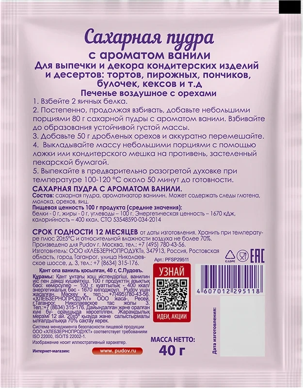 Пудра сахарная С.Пудовъ с ароматом ванили, 40г